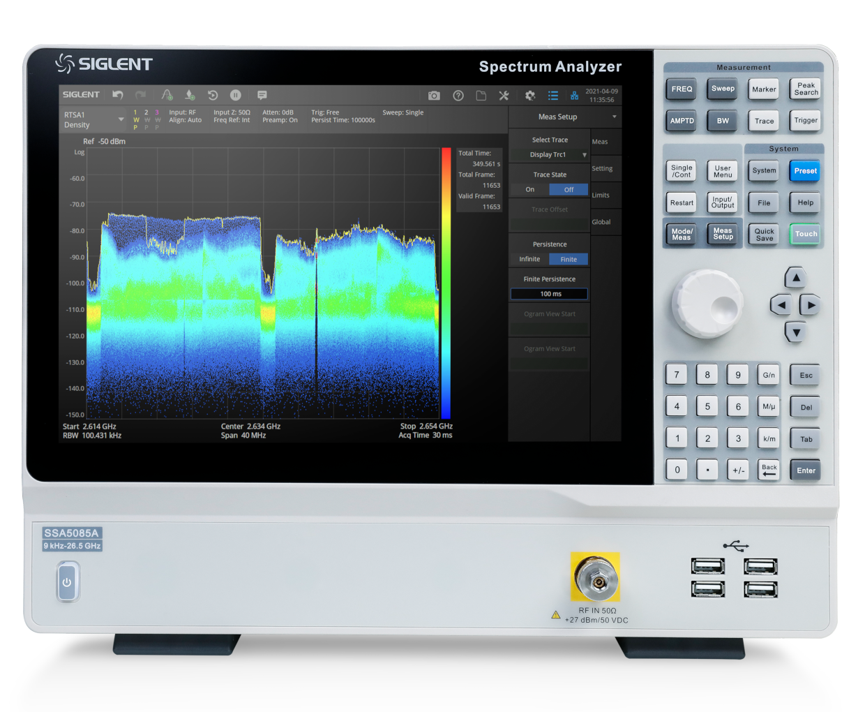| 频率范围:9 kHz ~ 26.5 GHz 最大实时带宽:40 MHz 相位噪声(典型值):<-105 dBc/Hz 显示平均噪声电平(DANL):-165 dBm/Hz 分辨率带宽(RBW):1 Hz ~ 10 MHz | 询 价 | ||