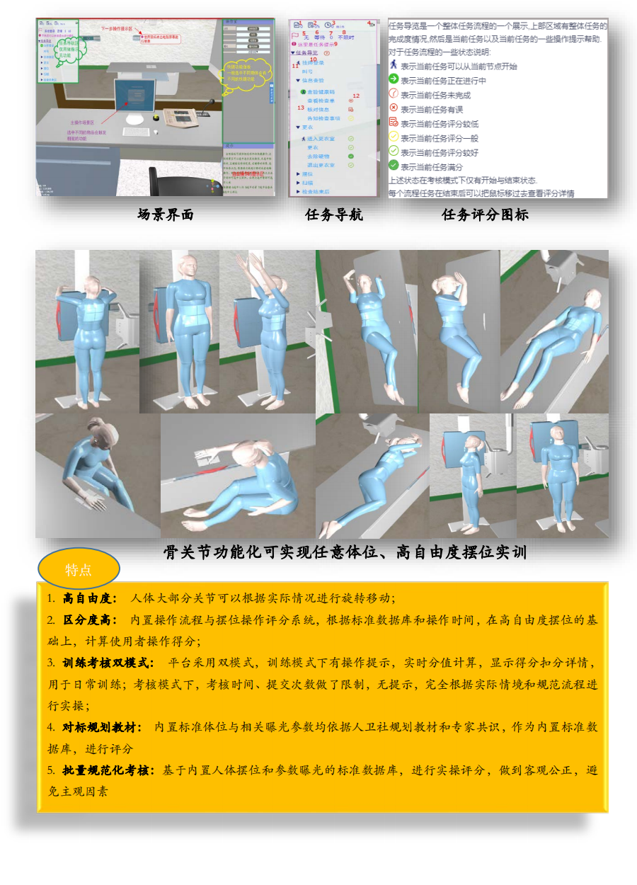 2. 开放性:3D 人体实现骨关节功能化,可进行高自由度摆位,系统全参数可调,